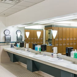 Our full-service locker rooms include complimentary towel service, shampoo, conditioner, moisturizing lotion, shaving cream, hair dryers and much more.